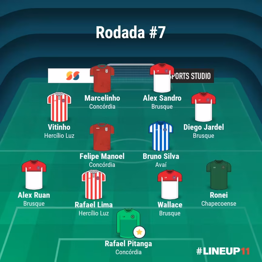 Wallace volta a estar presente na seleção. O capitão quadricolor já havia sido citado na quinta rodada, na qual as premiações foram abertas. Diego Jardel figura na seleção pela segunda rodada seguida, marcando o segundo gol da vitória por 2 a 1 sobre o Juventus neste domingo, 13. Alex Ruan fez o cruzamento para Alex Sandro marcar o primeiro gol do Brusque, com pouco mais de um minuto de jogo.