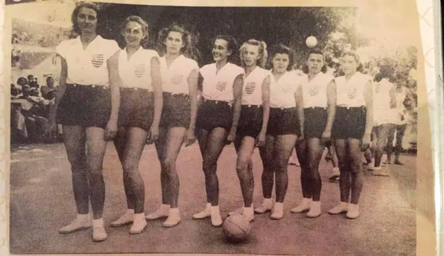 A Sociedade Esportiva Bandeirante foi pioneira no incetivo da prática do vôlei feminino, e criou uma legião de torcedores, atletas e admiradores do esporte. No registro histórico está uma equipe formada em 1948. Da esquerda para a direita: Iltrud Gums, Gisela Von Printz, Elvira Galle, Erna Orthamn Bueckman, Erica Orthman, Lidia Ristow, Geny Ristow e Elizabeth Rombach.