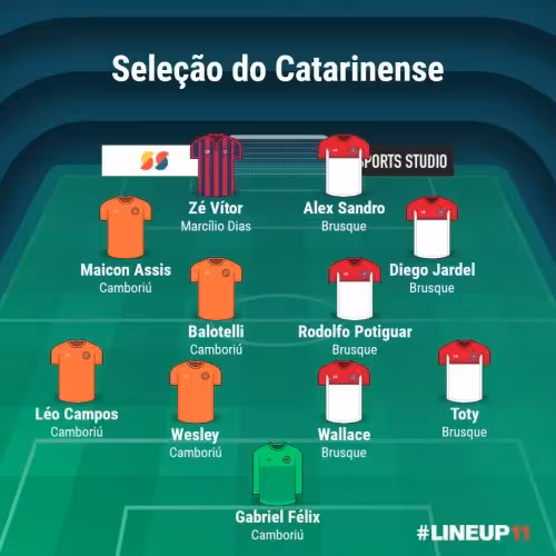 O vice-campeão Camboriú tem cinco jogadores. O Marcílio Dias completa a seleção com Zé Vítor, vice-artilheiro do campeonato, que está a caminho do Vasco.