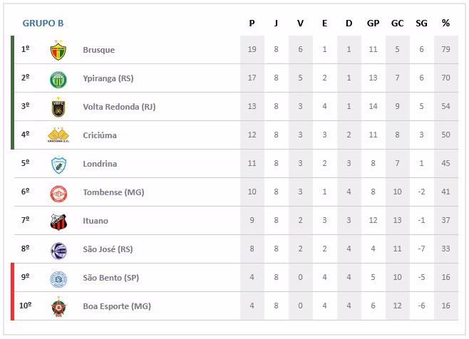 Brusque: Zé Carlos; João Carlos (Jefferson Renan 6′-2ºt), Claudinho, Neguete, Aírton; Zé Mateus, Guilherme Escuro; Edílson, Thiago Alagoano, Maurício Garcez; Geovane Itinga (Rodolfo Potiguar 19′-2ºt).