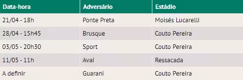 O Coritiba caiu nas semifinais do estadual diante do Maringá-PR e foi eliminado na primeira fase da Copa do Brasil perdendo para o Águia de Marabá-PA. Contudo, apresenta bons números e uma boa base para lutar pelo retorno à Série A.
