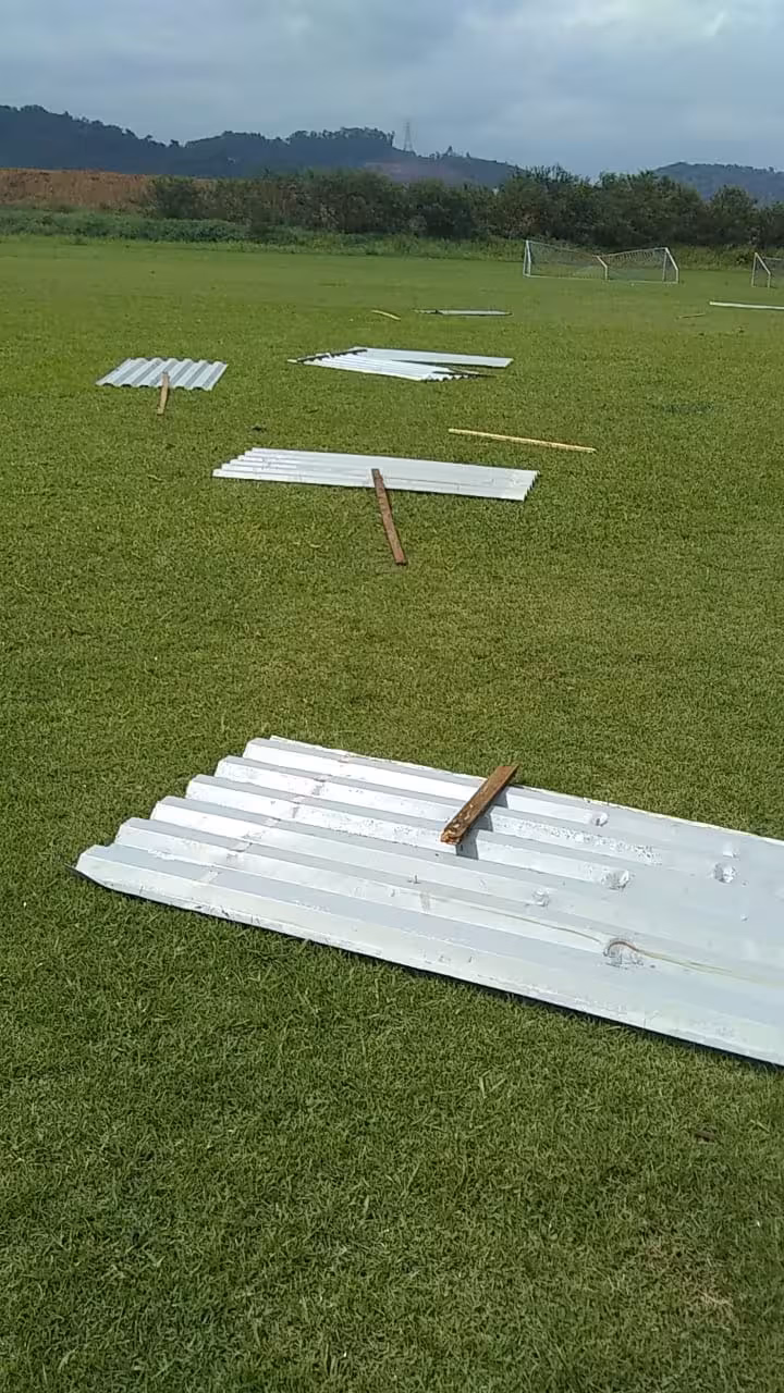 Houve queda de árvores próximo aos campos de treinamentos, os bancos de reservas perderem parte do telhado, assim como o quiosque