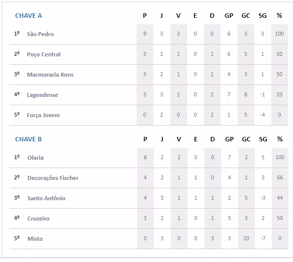 Na Chave A, o São Pedro segue isolado na liderança, com nove pontos, e já garantiu classificação às quartas de final. Venceu o Força Jovem por 2 a 1 e tem o melhor ataque da chave, junto com o Poço Central.
