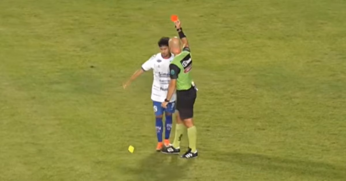 Jogador do Carlos Renaux dá tapa em cartão do juiz após ser expulso