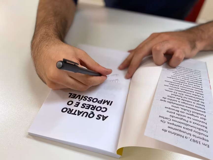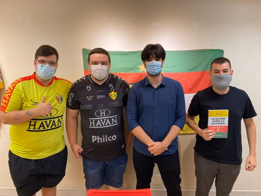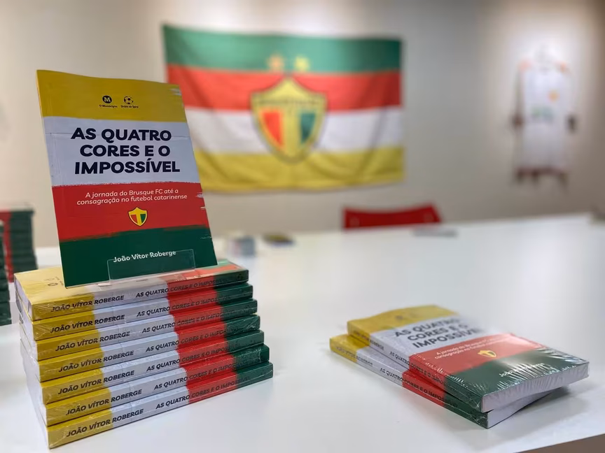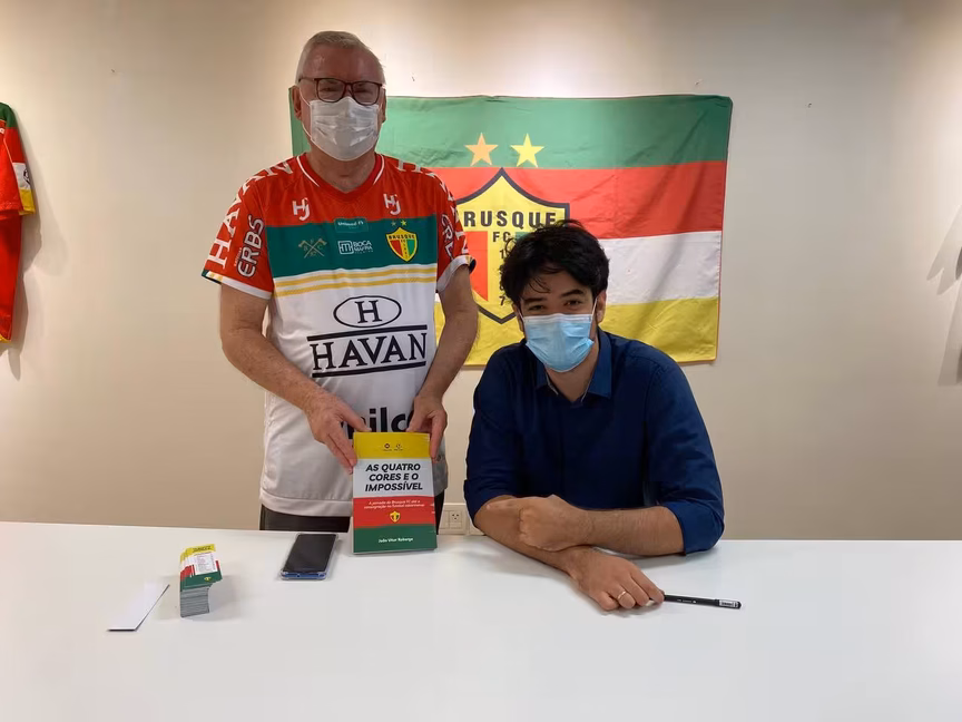 O livro As Quatro Cores e o Impossível – A jornada do Brusque FC até a consagração no futebol catarinense foi lançado na manhã deste sábado, 22, na Livraria e Papelaria Graf. O evento, que iniciou às 9 horas, reuniu diversos amantes de futebol e fãs da história do clube. O trabalho, de autoria do jornalista João Vítor Roberge, traz a trajetória do Brusque de 1987 a 2020, com base nos arquivos de O Município e nos escritos de outros veículos de cada época.