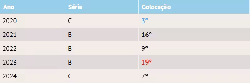 Principais títulos: 1 Série B (1980) e 5 estaduais (1962, 1981, 1992, 2014 e 2021).