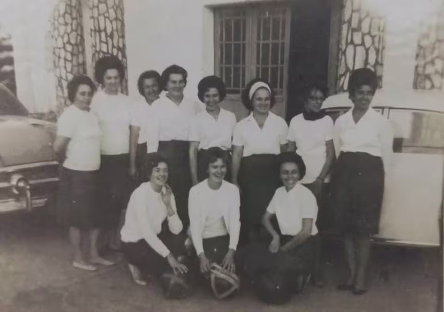 As moças do bolão no Paysandú entre as décadas de 60 e 70, como relata Jaqueline Kuhn no grupo Curto Fotos Antigas de Brusque, no Facebook. Ela identifica Lucila Colzani, a quarta em pé da esquerda para a direita. Ao seu lado, Davina Regis Appel. Na fila das agachadas, temos Adelgundes Appel, Irene Ristow Kuhn e Nesa Appel. No verso da foto, estão listadas Lita, Lina, Nina, Cacilda, Terezinha e Alice. A imagem é dos arquivos da mãe de Jaqueline, Irene Kuhn. Quer compartilhar uma memória do esporte? Envie um e-mail com descrição da imagem e assunto “Memória do Esporte” para [email protected]