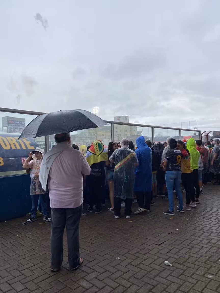 No início do primeiro tempo, a chuva apertou e os torcedores se protegeram com capa de chuva, guarda-chuva e bandeiras.