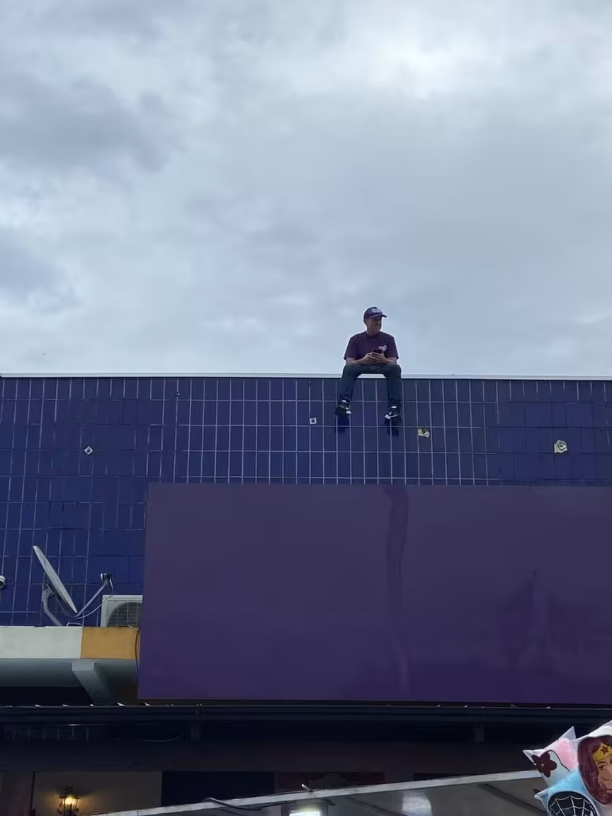 Torcedor deu um jeitinho de assistir ao jogo da grande final, da laje de um estabelecimento.