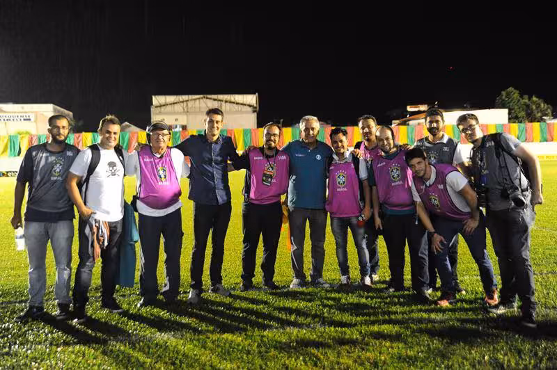 Para todos aqueles que não conseguiram ingresso para o jogão entre Brusque e Corinthians, lá estava a imprensa a trabalhar. Membros dos meios de comunicação regional, estadual e nacional suaram a camisa para dar todas as informações da partida. Na foto estão: Mateus Castro (RBS TV), Alisson Francisco (RBS TV), José Hoffmann (Rádio Clube), Edgar Alencar (TV Globo), Cristóvão Vieira (Município Dia a Dia), Mauro Naves (TV Globo), Leandro Almeida (Rádio Araguaia), Hamilton Junior (Rádio Diplomata), Alain Rezini (Rádio Cidade), Sidney Silva (Esporte SC), Jaison Lorenceti (Rádio Diplomata) e Fom Conradi (Fomtography). O registro é de Márcio Costódio.
