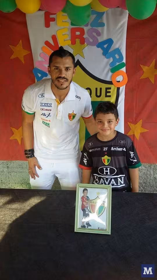 A paixão pelo futebol ainda move as crianças, e um exemplo foi do menino Eduardo da Cruz Gomes. Apaixonado pelo Bruscão, ele ganhou uma festa temática, e ainda teve a grata surpresa de ser recebido por Mineiro, atleta da equipe. Parabéns Eduardo e Mineiro por mais uma bela atitude.