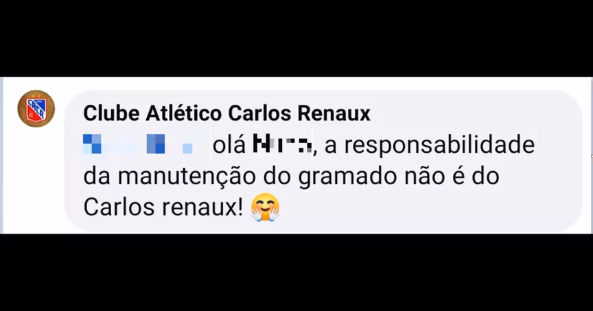 Segundo Lucas, o gramado é de responsabilidade do Carlos Renaux. "Pagamos R$ 50 mil para eles cuidarem disso, mas dá pra ver que somos feitos de bobos", publicou no Twitter.