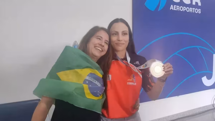 Após a conquista inédita da medalha de bronze no mundial de atletismo, a atleta catarinense Letícia Oro Melo, 24 anos, foi recepcionada de forma calorosa no aeroporto de Joinville, na tarde desta terça-feira, 26.