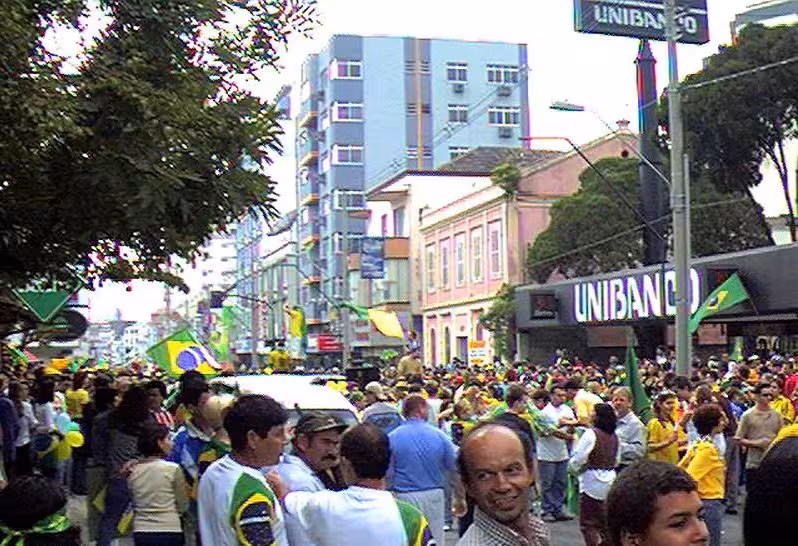 Já que mais uma vez o Brasil não chega a final, restam as memórias de quando Brusque viveu a festa do último título, há 16 anos. A avenida Cônsul Carlos Renaux foi tomada pela torcida verde e amarela que foi aos poucos se aglomerando, principalmente na praça Barão de Schneeburg, exatamente no dia 30 de junho de 2002.