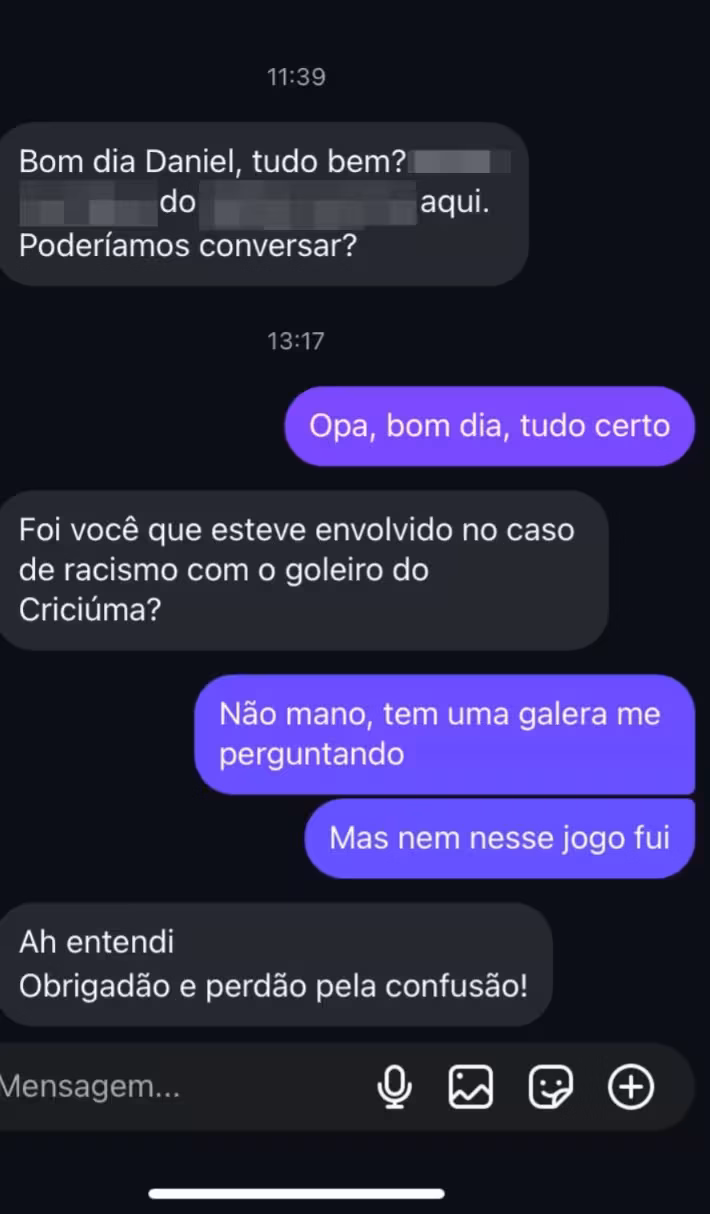 Daniel Alexandre Ramos contou que vem recebendo ameaças e xingamentos em suas redes sociais. Ele também é torcedor do Bruscão e costuma frequentar o estádio Augusto Bauer, mas não esteve presente no empate em 1 a 1 diante do Criciúma no último sábado, 8, quando o caso ocorreu.
