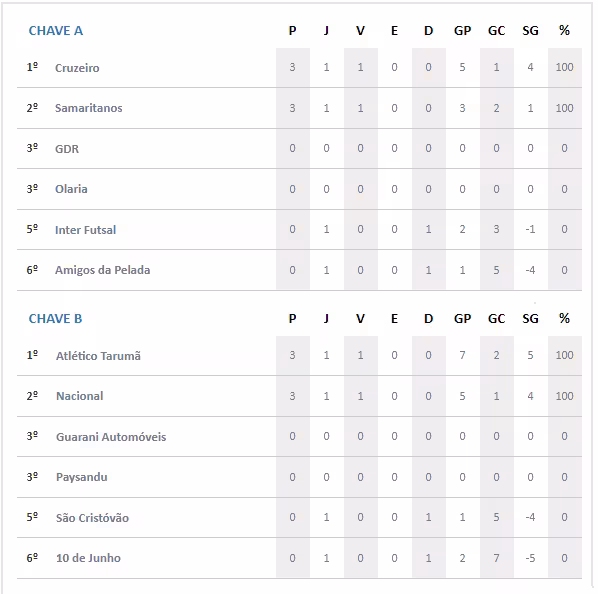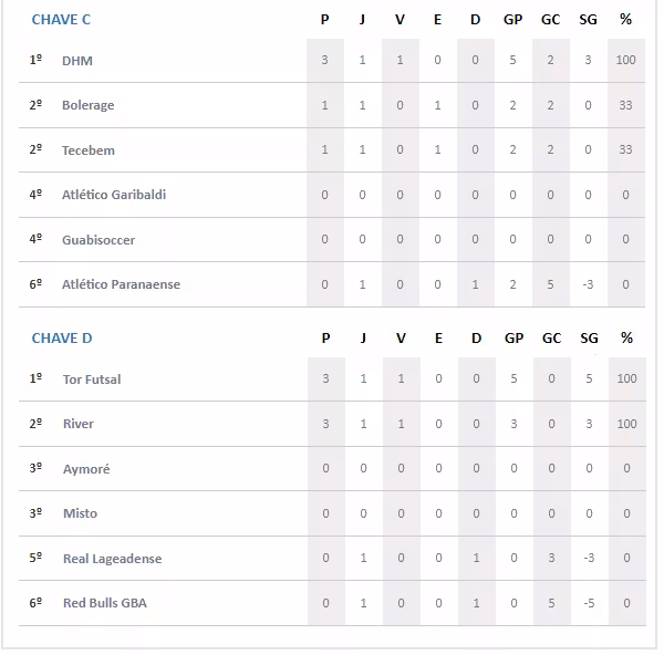 As partidas do torneio masculino também tiveram goleadas. No primeiro jogo do fim de semana, o Tor Futsal aplicou 5 a 0 sobre o Red Bulls; no último, o Atlético Tarumã (antigo Atlético Guabirubense) venceu por 7 a 2.