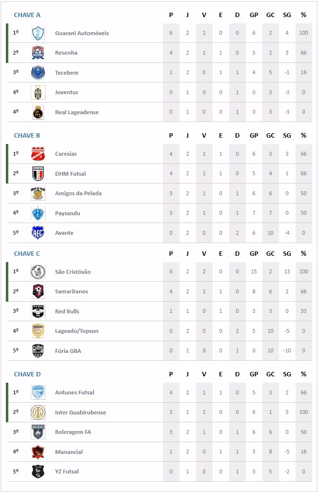 Na Chave A, o Atlético Tarumã aplicou 13 a 0 sobre o Atlético Paranaense e lidera com três vitórias e 34 gols marcados em três jogos.
