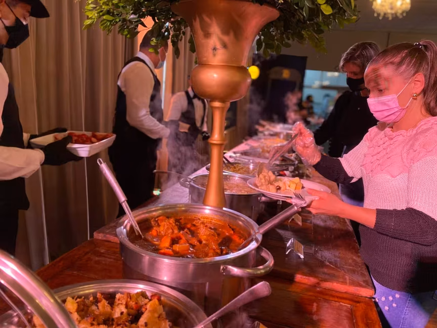 “O ambiente é animado, depois de tanto tempo sem ir a lugar nenhum, é a primeira vez que eu venho. É uma experiência interessante”, relata. Adilson também afirma que conhece algumas das comidas do buffet, mas outras são novidades. “É bem saboroso, valeu a pena”, completa.