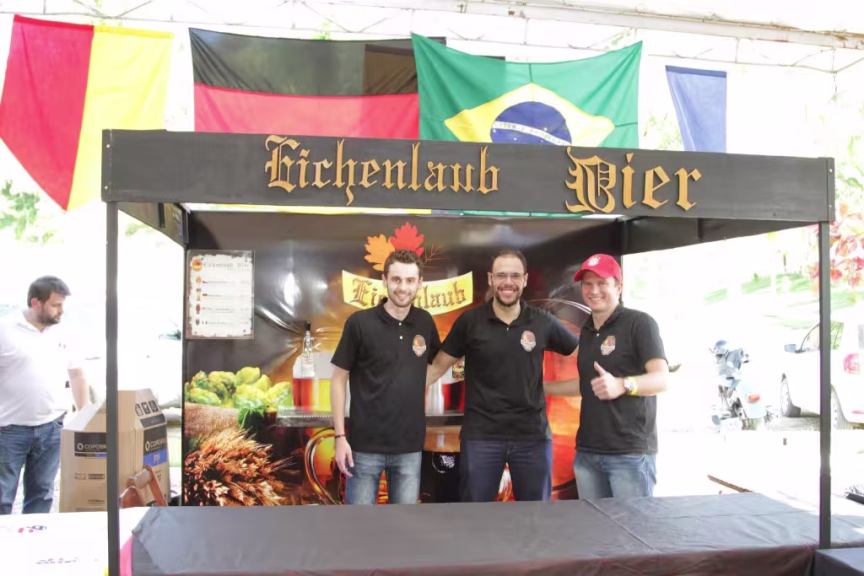 No bairro São Pedro, a Eichenlaub Bier é um exemplo da nova geração cervejeira da cidade. Marco Aurélio Hodecker, engenheiro civil, Luan Carlo de Pinho, funcionário do setor administrativo, e Anderson Groh, estudante de Engenharia Química, começaram a fazer cerveja há pouco mais de um ano.