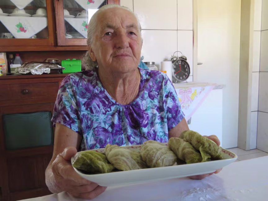 Já o holuptchi ou golabki é um enroladinho de couve ou repolho com carne ou arroz. Dona Apolônia faz os dois tipos e, ao arroz, acrescenta o ‘formentão’, um grão também conhecido como tatarca e trigo-mourisco, que foi trazido pelos imigrantes.