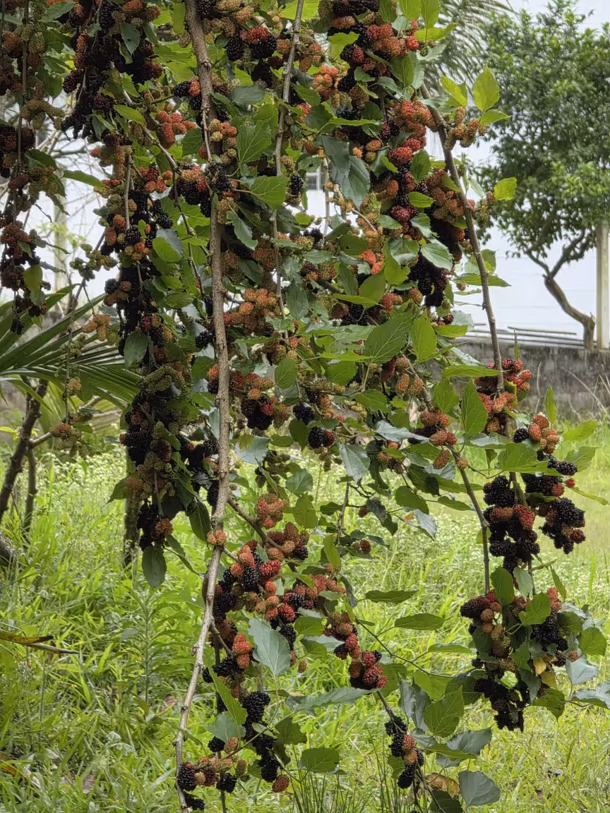 Em meio ao movimentado bairro Rio Branco, em Brusque, um pé de amora tem despertado atenção e encantamento na propriedade do casal Aléssio e Adriana Groh, que, por preferência pessoal, optaram por não figurar nas imagens que acompanham esta reportagem.