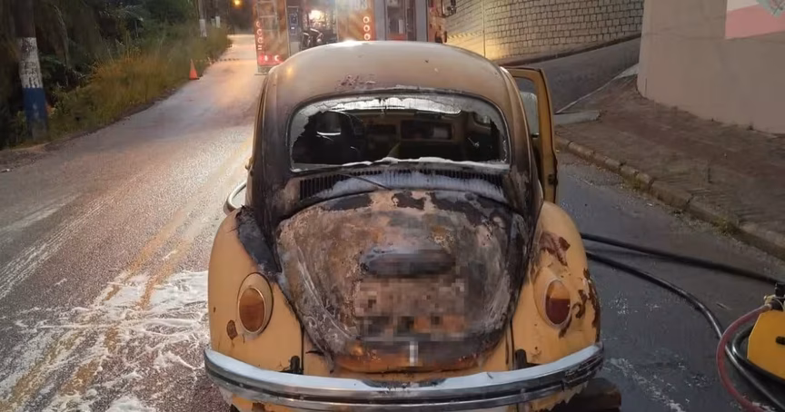 Fusca é atingido por incêndio no Centro de Guabiruba