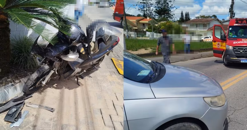 Motociclista sofre fratura exposta após colisão com carro em Guabiruba