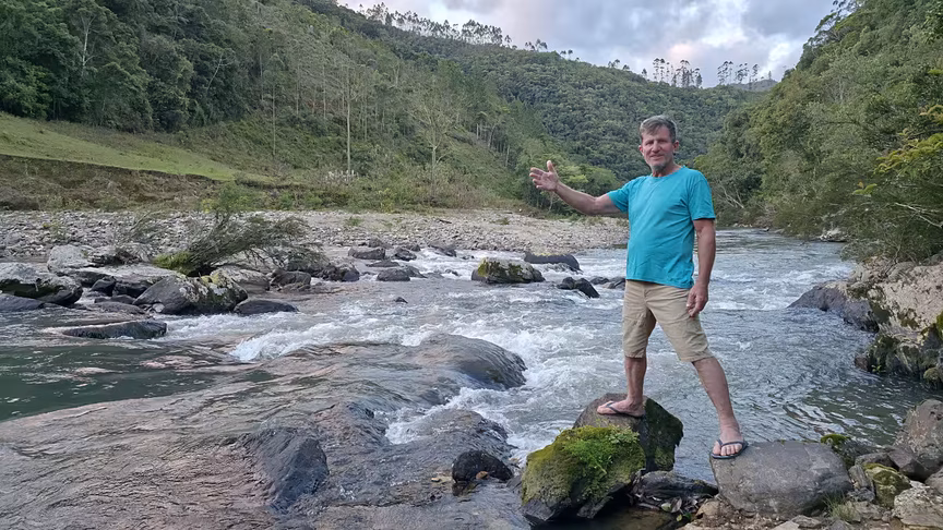Em meio à exuberância dos morros revestidos pela densa mata e ao fluxo sereno do rio Itajaí-Mirim, o local destinado à construção da futura barragem de Botuverá ainda conserva a tranquilidade típica das paisagens do interior.