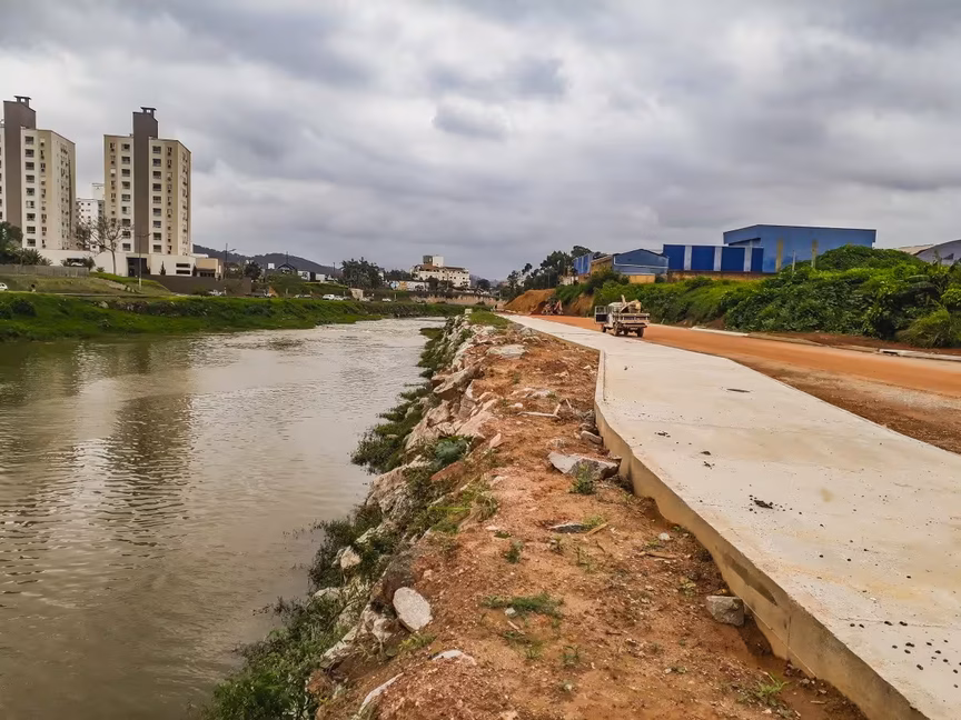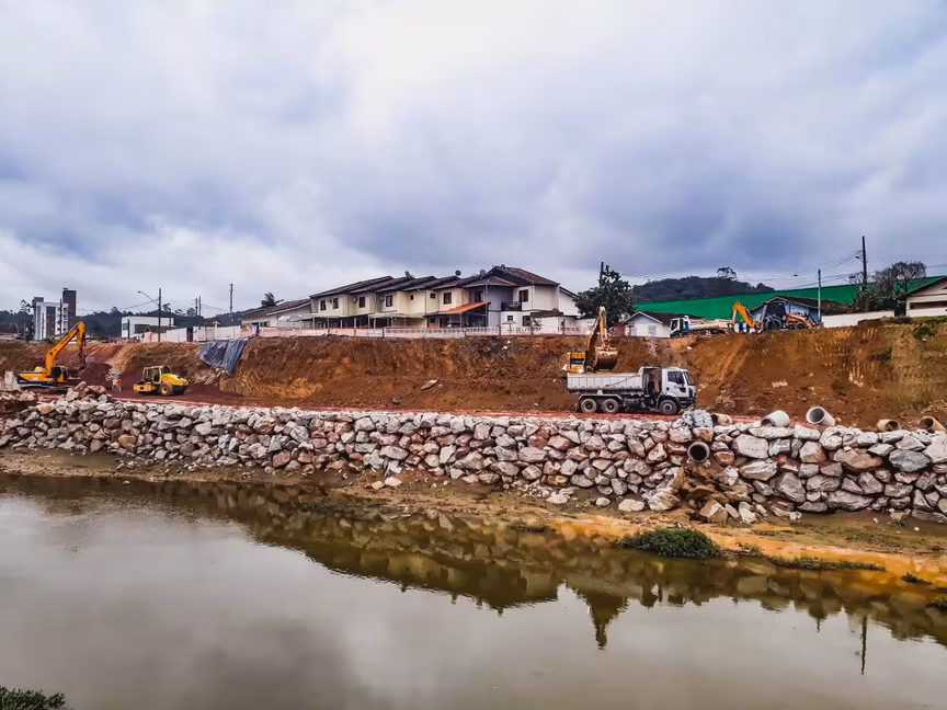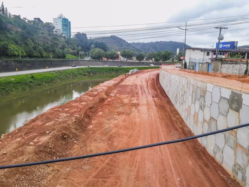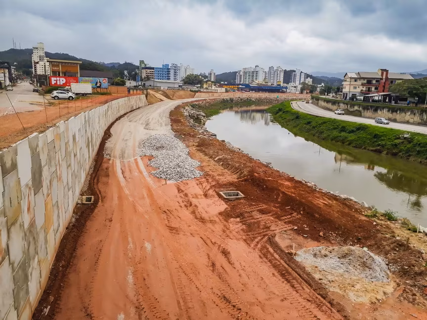 Confira a seguir, imagens capturadas nesta quarta-feira em Brusque, onde podemos observar como estão as obras de construção da nova Beira Rio, margem esquerda:
