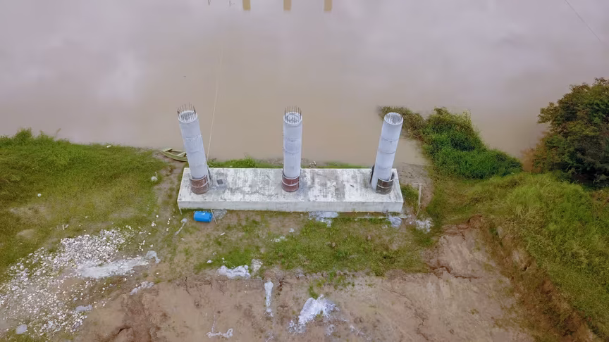 A empresa responsável pela obra chega a este mês de maio com 50% dos serviços executados. Isso inclui a cravação das 80 estacas pré-moldadas protendidas previstas e a execução dos blocos de fundação. Com isso, a ponte já começa a tomar forma e se integrar à paisagem deslumbrante em seu entorno.