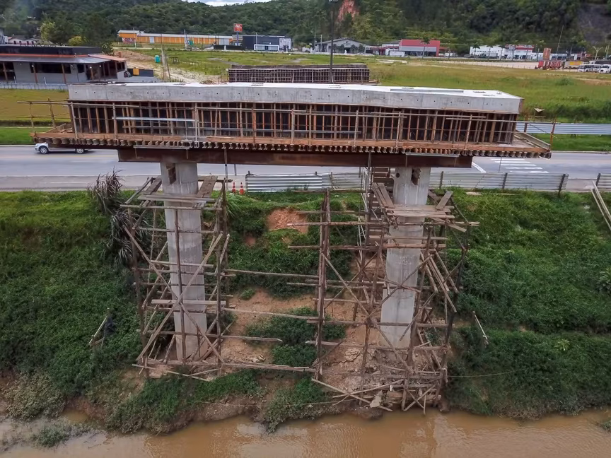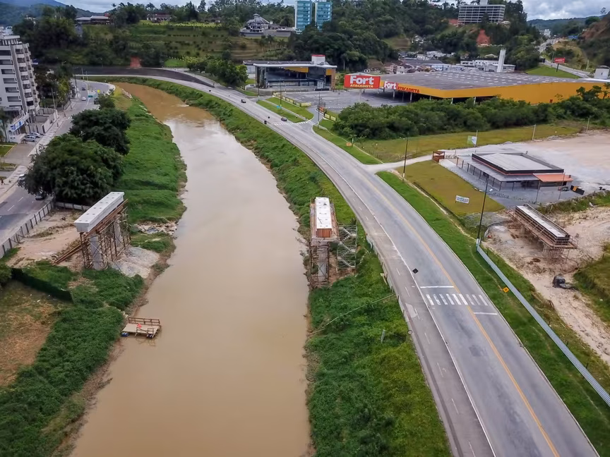 GALERIA – Obras da nova ponte do Centro de Brusque vistas do alto