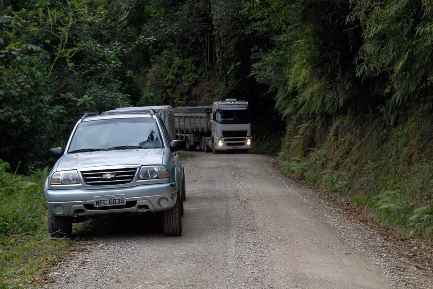 “[O trecho que querem abrir] nem é uma estrada. É uma trilha de madeireiro. É uma morraria”, afirma Pedro. “Como um caminhão de carga vai subir? É uma estrada para trilha”, complementa Norma.