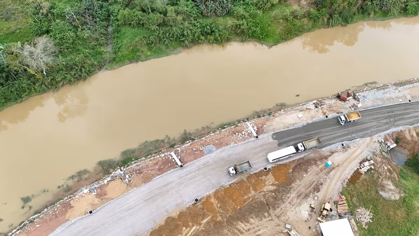 A prefeitura desenvolveu o projeto para suportar a força do rio em períodos de cheia e garantir uma pavimentação de alta durabilidade.