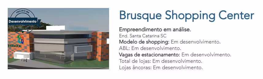 No site da empresa, o Brusque Shopping Center continua entre os empreendimentos em desenvolvimento.