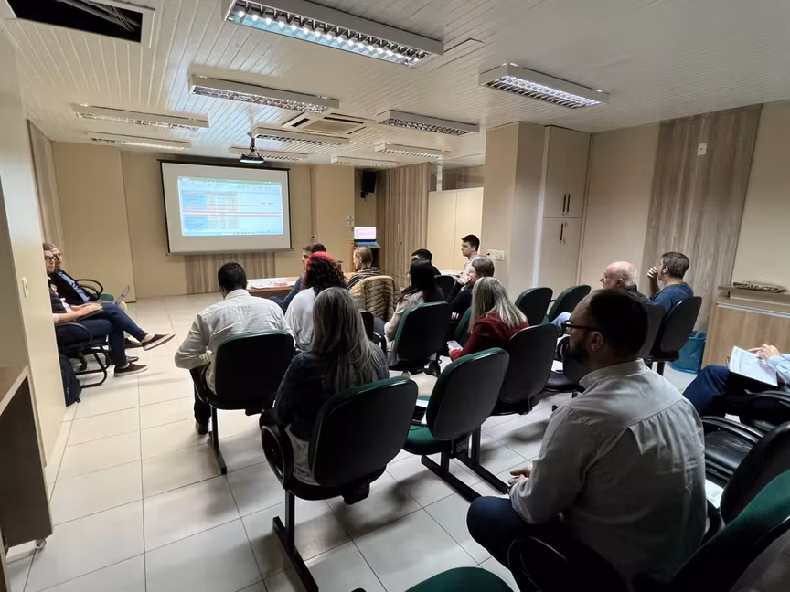 Estão presentes os membros da Unidade Executora do Projeto (UEP), coordenadores, o especialista em aquisições do banco internacional, membros da assessoria prevista em contrato para o acompanhamento da execução das obras, além de especialistas do projeto, da gestão financeira e também a coordenadoria geral de gestores, através de videoconferência.