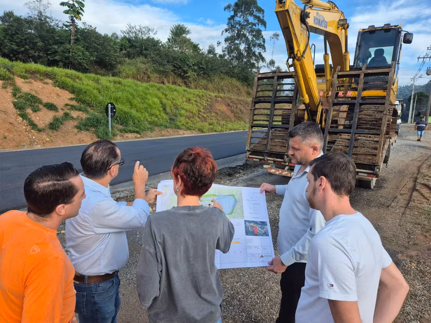 O início das obras foi acompanhado pelo vice-prefeito Kaioran Paloschi, pela engenheira civil Ana Cláudia Victorino, pelo secretário de Obras, Zeca Leoni, e pelo diretor do Núcleo de Empresários de Botuverá, Edson Rubem Muller, o Pipoca.
