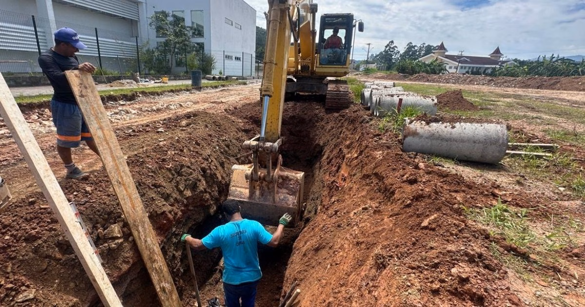 Nova via do Jardim Maluche recebe instalação de rede de tubulação, em Brusque