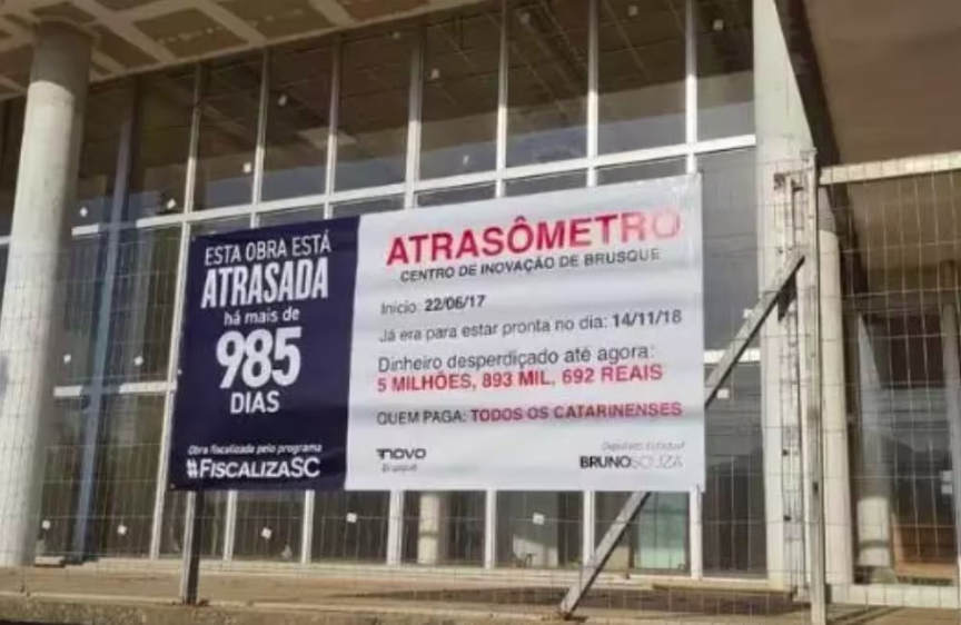 Em 2021, o então deputado estadual Bruno Souza, na época do Novo, passou pela cidade e colocou a placa do “atrasômetro” no Centro de Inovação, em tom crítico à demora para conclusão da construção.