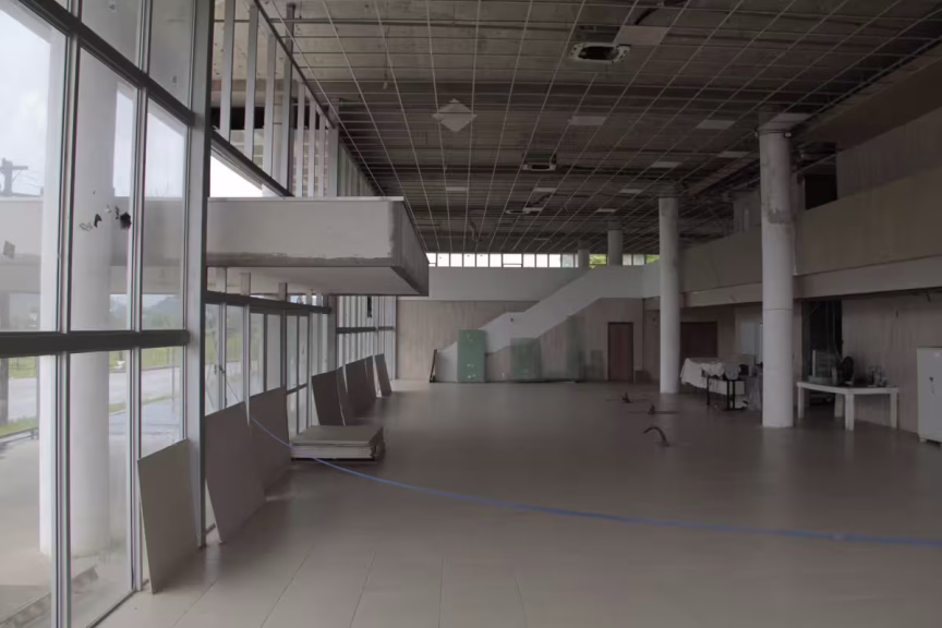 No mesmo ano, o governo do estado rompeu o contrato com a empresa que executava a obra. Em razão da paralisação, o prédio teve danos gerados pelo clima e vandalismo. O percentual de conclusão da obra hoje não é mais o mesmo que foi projetado em 2021.