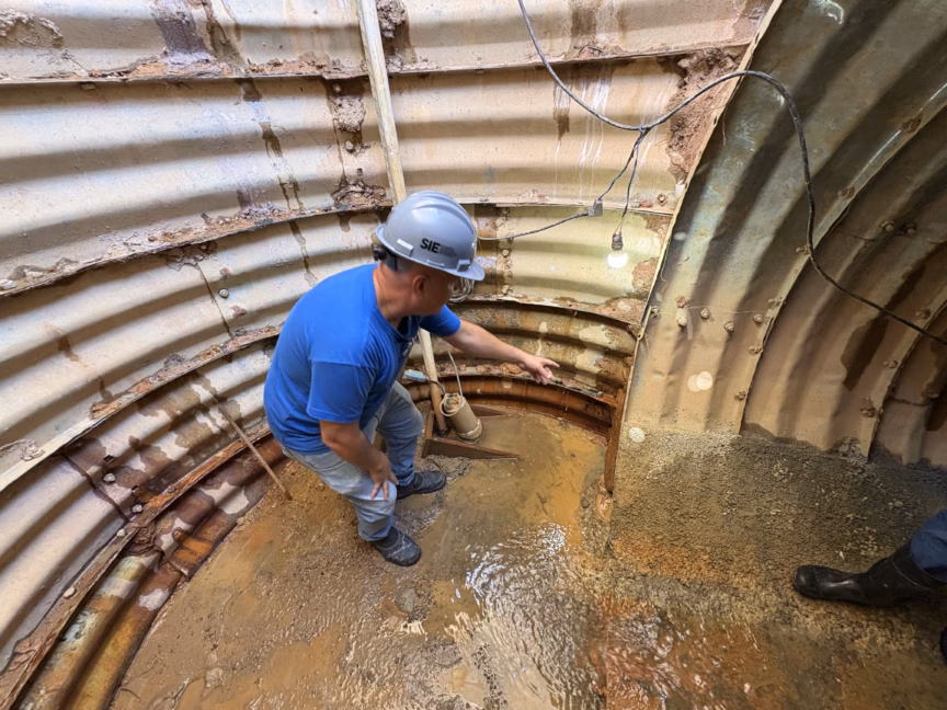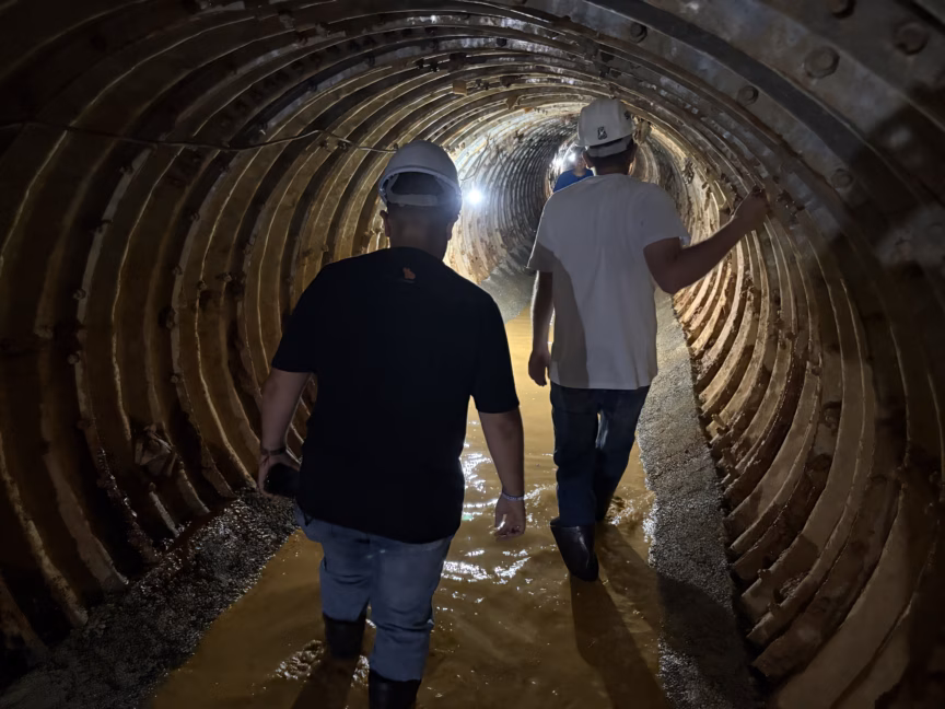 Patel relata que, mesmo após um dia inteiro de trabalho, a galeria pode amanhecer parcialmente tomada. “Por isso, usamos duas bombas, uma de 100 mil litros por hora e outra de 20 mil litros por hora, para conseguir esgotar e seguir a escavação”, explica.