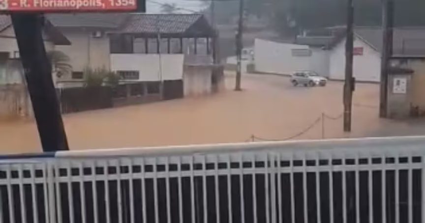 VÍDEO – Trecho da rua Florianópolis, em Brusque, alaga durante chuva desta terça-feira 30/12/2025 • João Henrique Krieger