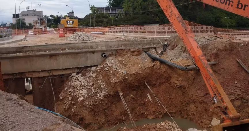 Prefeitura de Brusque e consórcio da Beira Rio trabalham no conserto da Ponte do Bombeiro