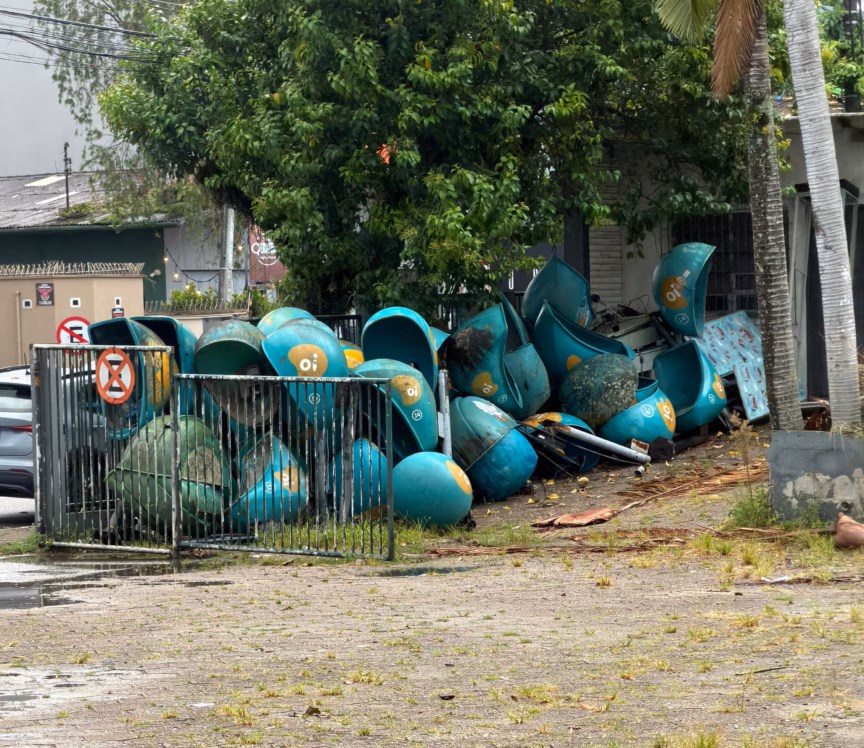 Desde 2020, a empresa Oi de Telecomunicações vem retirando os seus orelhões das vias públicas. As estruturas acabaram descartadas no pátio da marca, no Centro, entre as ruas Barão do Rio Branco e Paes Leme. Entretanto, ao longo do tempo, o pátio se tornou um depósito ao ar livre de peças de postes, fios, cabos e lixo.
