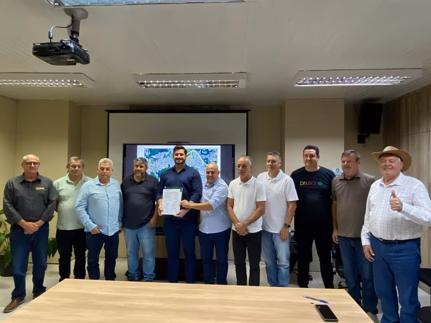 A solenidade contou com a presença do prefeito André Vechi, o vice-prefeito André Batisti, o Deco, que também é secretário de Infraestrutura Estratégica, representantes do consórcio Freedom/Pacopedra/Augusto, que venceu a licitação, além de vereadores e servidores municipais.