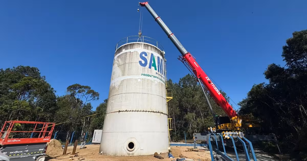 Conforme a prefeitura, a etapa marca o encerramento da montagem do reservatório metálico. Ele tem capacidade de 500 mil litros.