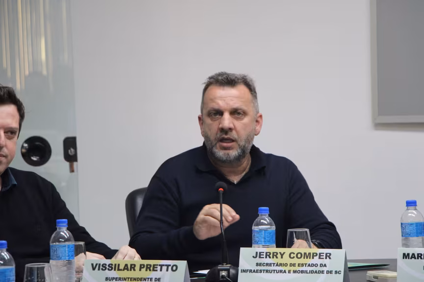 O secretário de Infraestrutura do Estado de Santa Catarina, Jerry Comper, participou da reunião da diretoria da Associação Empresarial de Brusque, Guabiruba e Botuverá (Acibr) nesta segunda-feira, 26. Durante o encontro, foram discutidas demandas e problemas relacionados às rodovias da região.
