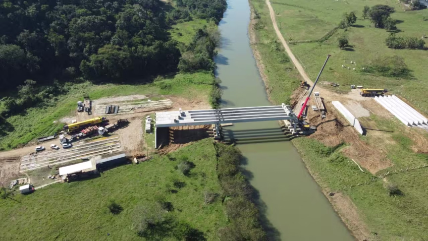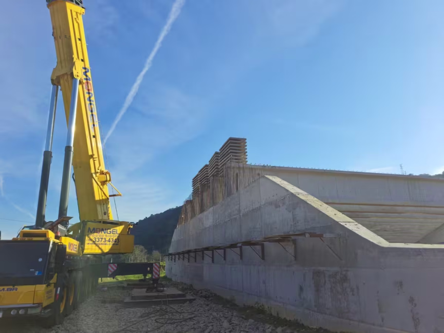Recentemente, na terça-feira, 25, um marco importante foi alcançado, com a finalização do içamento das vigas da ponte. Além disso, a empresa responsável também está em processo de içamento das pré lajes, com previsão de conclusão ainda nesta última semana de julho, o que vai contribuir para avançar ainda mais o progresso da obra.
