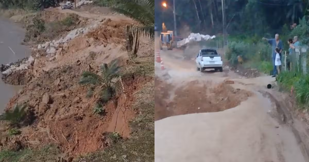 De acordo com os relatos dos moradores, o rio, que fica logo abaixo, começou a “comer” parte da estrutura da via por baixo. A Secretaria de Obras informou que o trecho já era monitorado há tempos.