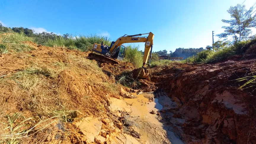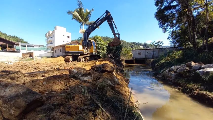 A Secretaria de Obras e Serviços Urbanos de Brusque realizou a limpeza de valas nos bairros Volta Grande e São Pedro nesta quinta-feira, 13. Foi feito também o conserto do enrocamento na rua Theodoro Albrecht, no São Pedro.