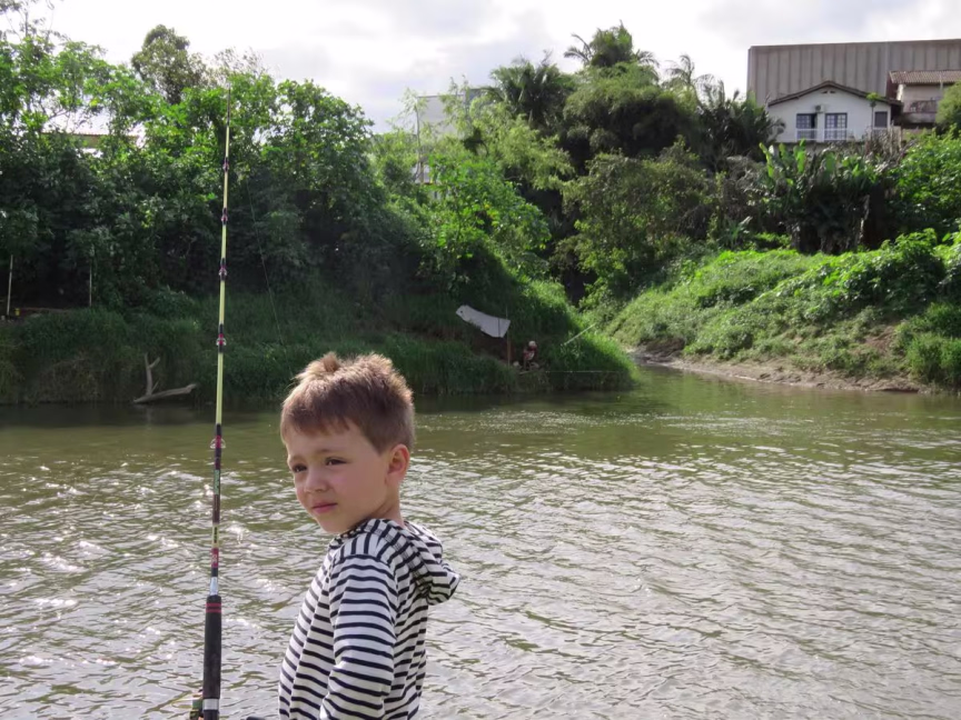 A poluição, inclusive, é uma presença constante em suas pescarias. Ele conta que já flagrou muito lixo nas margens e até dentro do rio. Além disso, já visualizou muitos dos descartes realizados pelas empresas de Brusque. “Já vi muitas situações, é bastante comum. A gente fica triste, o rio é um bem de todos e deveria ser melhor aproveitado. Infelizmente, temos que conviver com isso”. Mesmo ciente dos despejos de produtos químicos e esgoto doméstico, o pescador não se importa de consumir os peixes que consegue na pescaria. “Como todos os peixes que pesco. Quando pego os grandes, convido os amigos para saborear também. O gosto é normal, não tenho medo de contaminação”. Em algumas pescarias, José Carlos tem a companhia do filho Cauã, de 3 anos. O menino, bastante esperto, já está acostumado com a rotina às margens do rio e adora pescar com o pai. Uma das suas partes favoritas da pescaria é poder manusear a vara, sempre sob a supervisão atenta do pai.